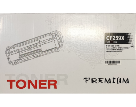 Toner HP 59X, HP CF259X. Az élettartam körülbelül 10 000 A4-es oldal, 5% -os lefedettség mellett.